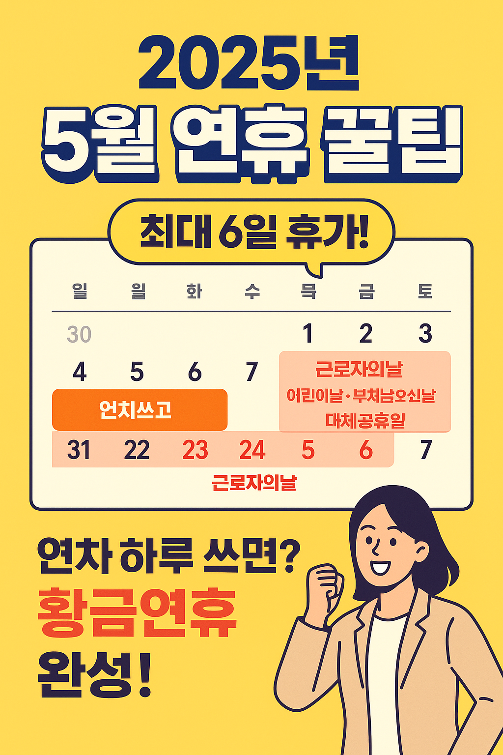 - **5월 2일(금)**에 연차 쓰면 최대 6일 휴가 확보 가능!